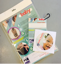 The BABY BASICS material includes a take-home DVD demonstrating the skills, an A4 laminated poster and an A6 laminated key card which can be attached to the nappy bag.